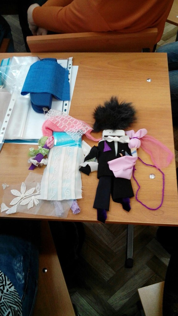 Нам было очень скучно, поэтому мы кусочками ткани нарядили айфон и плитку белого пористого шоколада. Шоколад вроде был за жениха, айфон за невесту, или наоборот и в общем все оставшуюся пару проводили для них свадьбу. И ничего такого, что у нас группа была по возрасту от 20 до 40